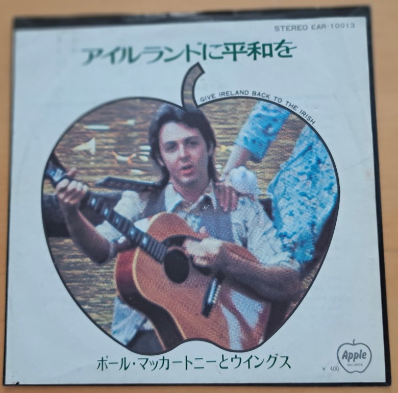 Somewhat randomly, I grabbed the Japanese edition of Paul McCartney’s 45 Give Ireland Back to the Irish. Paul is my favorite Beatle, always has been, and I have long been fascinated by this out-of-character, explicitly political song. I can’t think of anything similar in his songbook. The tune itself is not good, and could not be more 1972 McCartney-jams-and-glams. However, it gets points for being earnest and explicit, which I find preferable to John’s vague, hippy dippy platitudes.