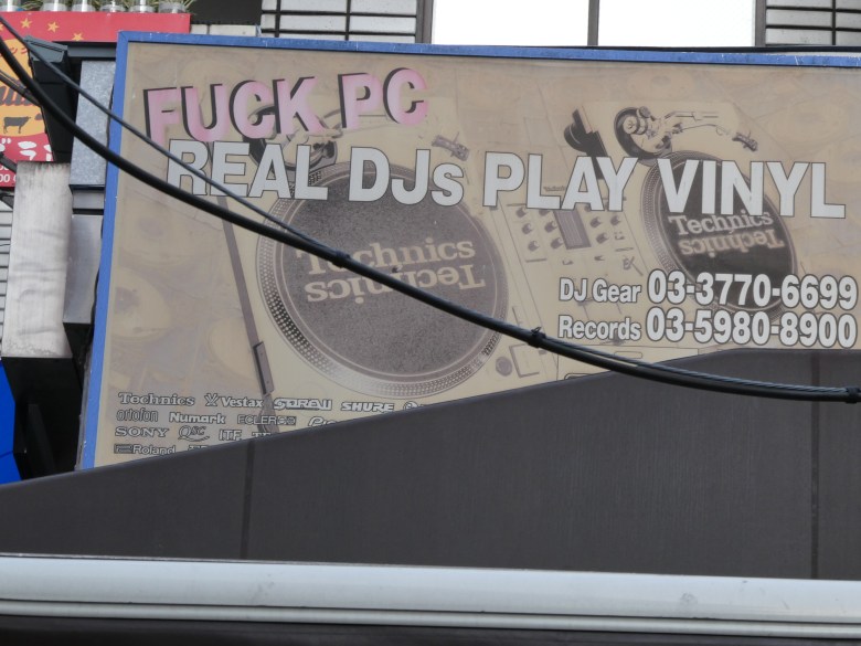 On a recent trip to Japan, I reserved the day before I flew home for record shopping. Since I was in Tokyo, I chose to go to Shibuya because of the variety and density of record stores there. I set out with snacks, a water bottle and the DJ bag I had brought for safely putting records in the overhead bin on the return flight. Because it is so crowded, Shibuya is otherwise not my cup of tea. It is famous for that intersection where a kabillion people cross at the same time from multiple directions. Thankfully, most of the record stores are on the periphery of the main shopping arteries.