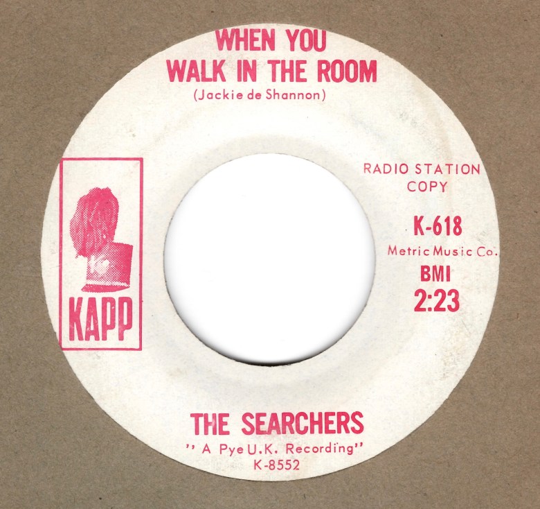 When You Walk in the Room was a cover of the original written and performed by Jackie DeShannon. The Searchers also had a hit with another song she performed, Needles and Pins (later covered by multiple artists). As with the first song, I think her version is superior to theirs. I also believe there is something wrong about a group putting out multiple singles covering the same artist, unless the songs in question are only one part of their legacy. Thus, I give the Byrds a pass for frequently returning to Dylan because they have a lot of their own influential material. Quiet Riot covering two Slade songs on the other hand, not so much. That seemed weak, as does the Searchers building their career on the shoulders of Jackie DeShannon.